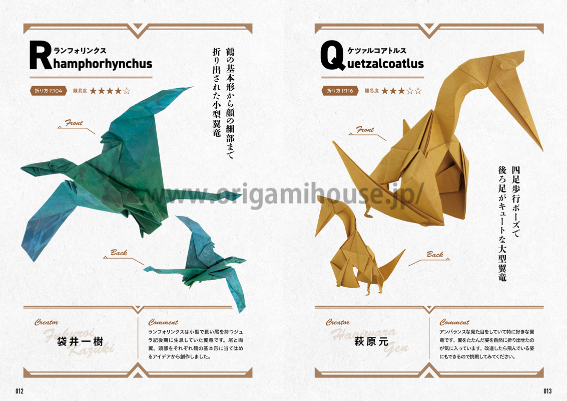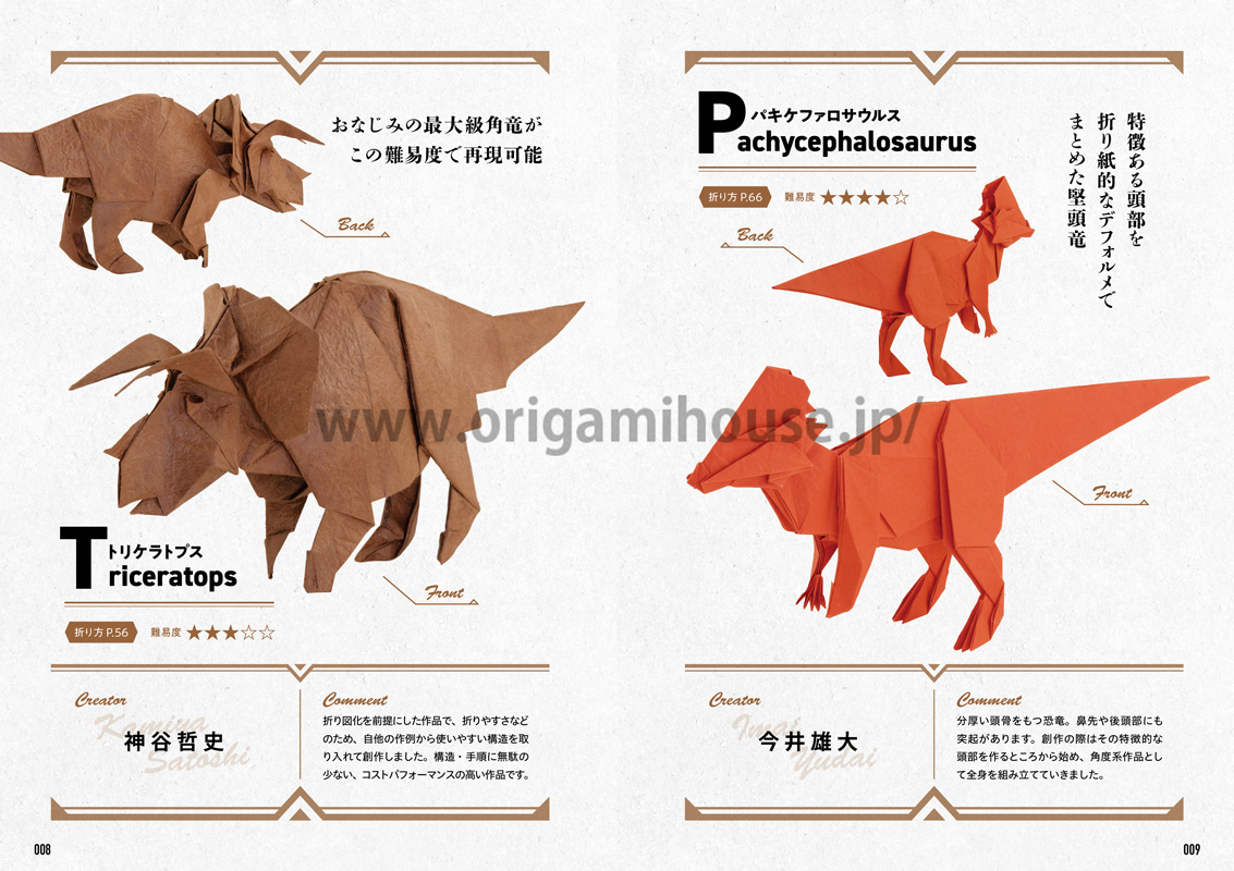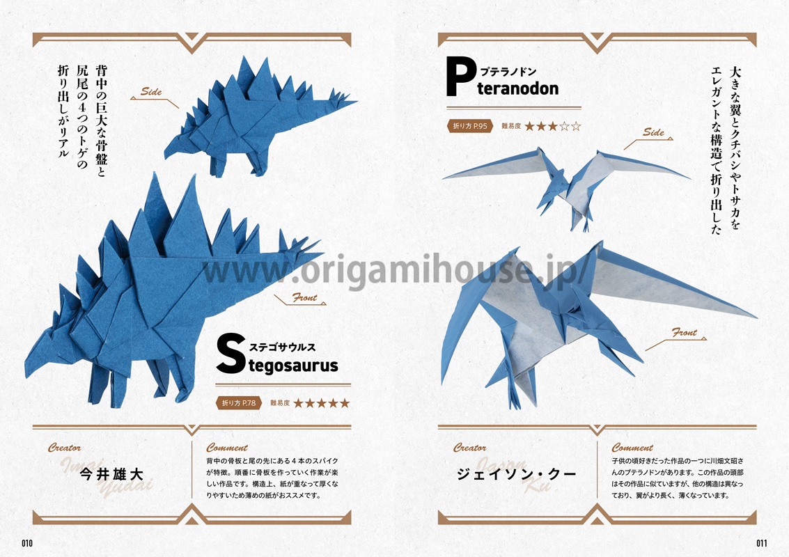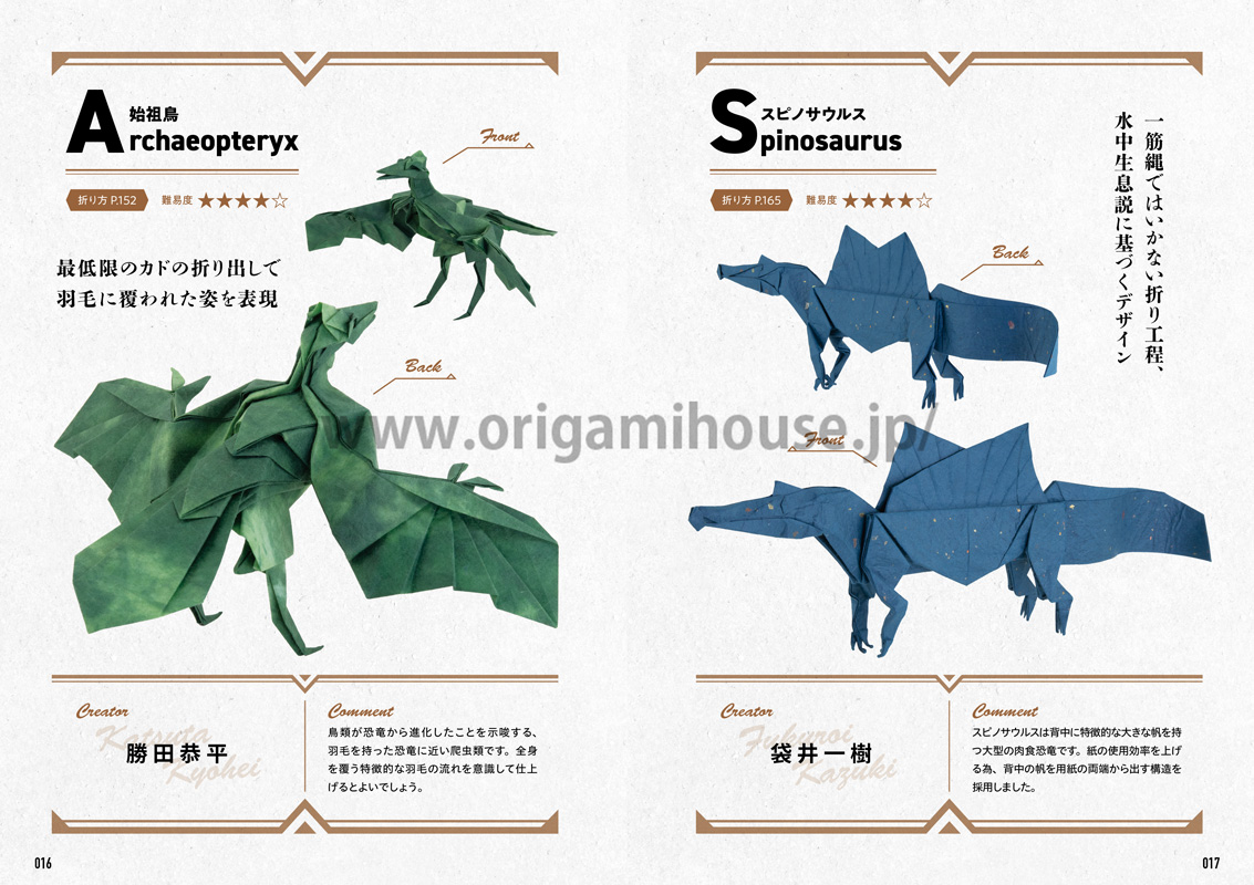 多彩な恐竜の折り紙作品を19作品掲載