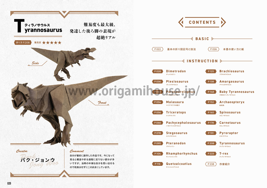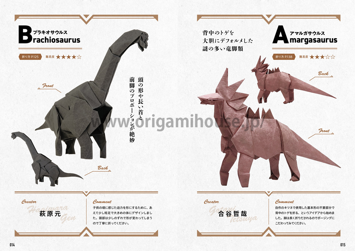 多彩な恐竜の折り紙作品を19作品掲載